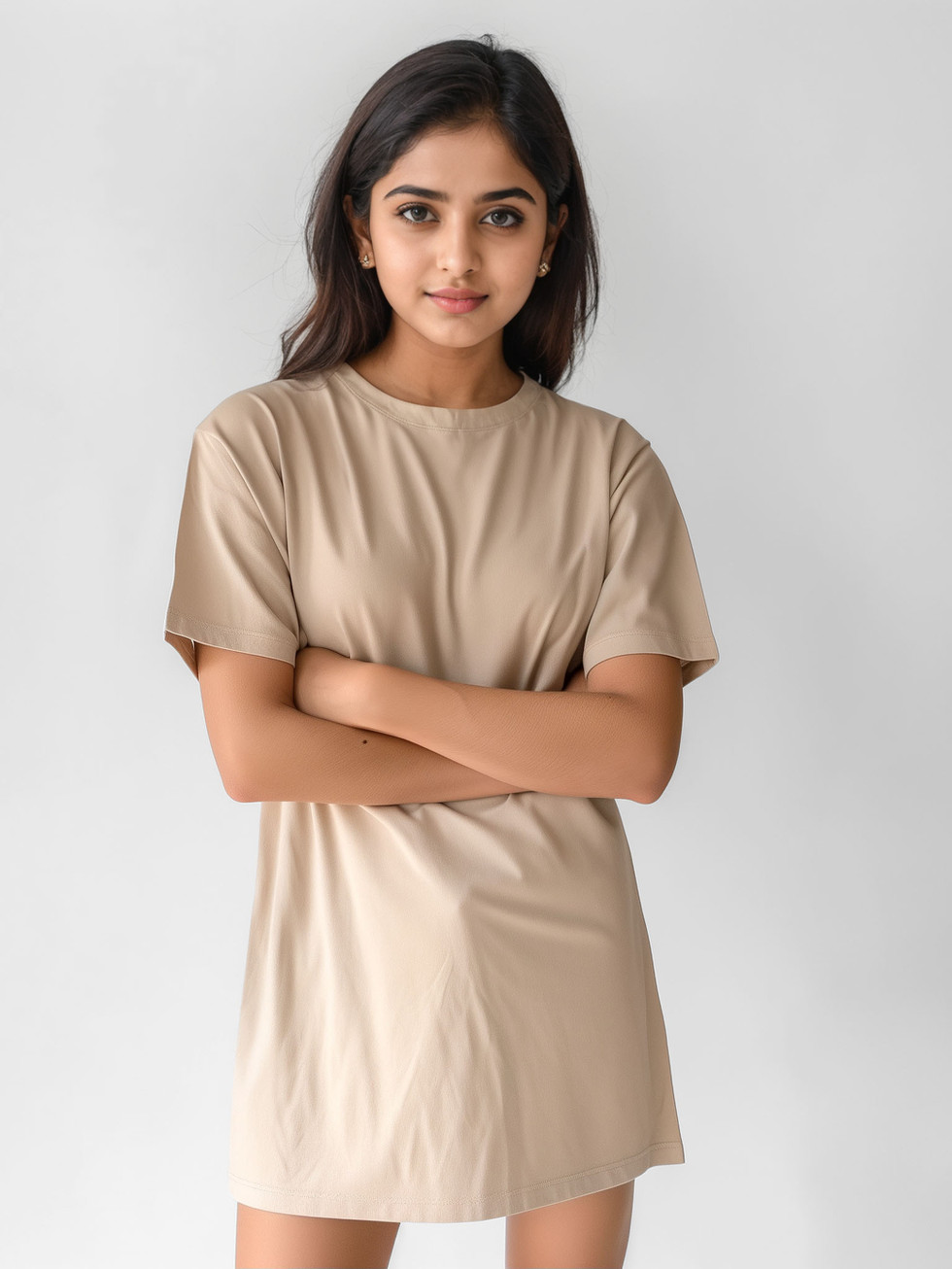 Our T-shirt Dress is the ultimate fusion of comfort and style, perfect for any casual outing or relaxing day at home. Made with soft, breathable fabric and featuring a relaxed fit, this dress effortlessly combines fashion and ease.